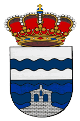 El Escudo: Primero, de plata faja ondada de azur, segundo, de azur campanario de plata. Al timbre corona cerrada.
